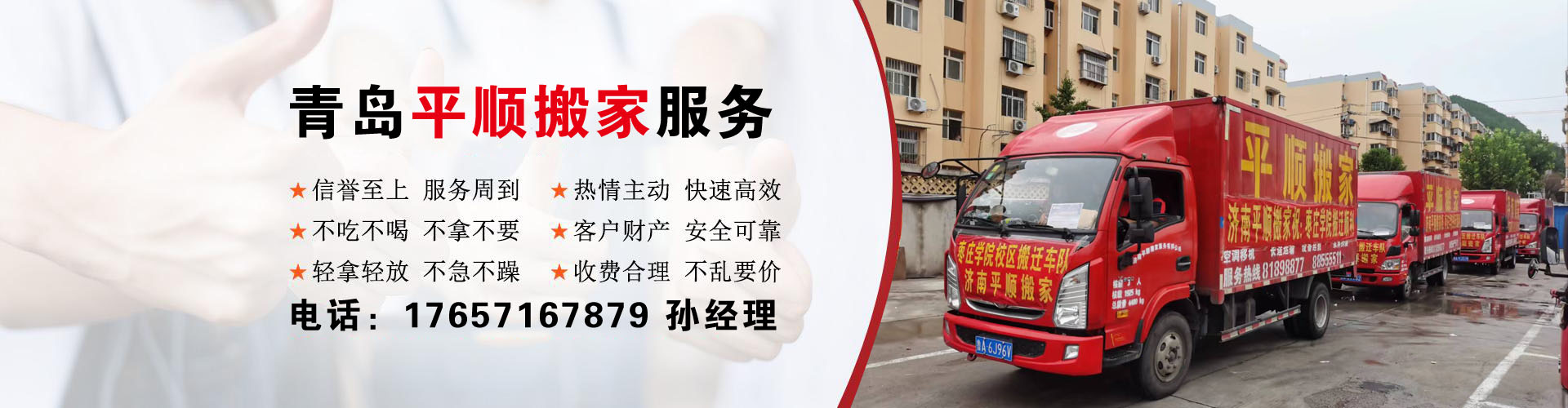 為客戶提供"服務(wù)稱心、質(zhì)量放心、搬運(yùn)省心"的優(yōu)質(zhì)搬場服務(wù)。